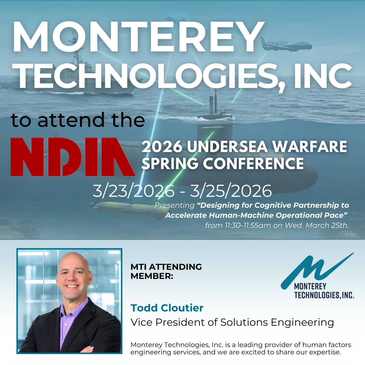 Monterey Technologies, Inc. is attending the NDIA’s 2026 Undersea Warfare Spring Conference, March 23–25, 2026.