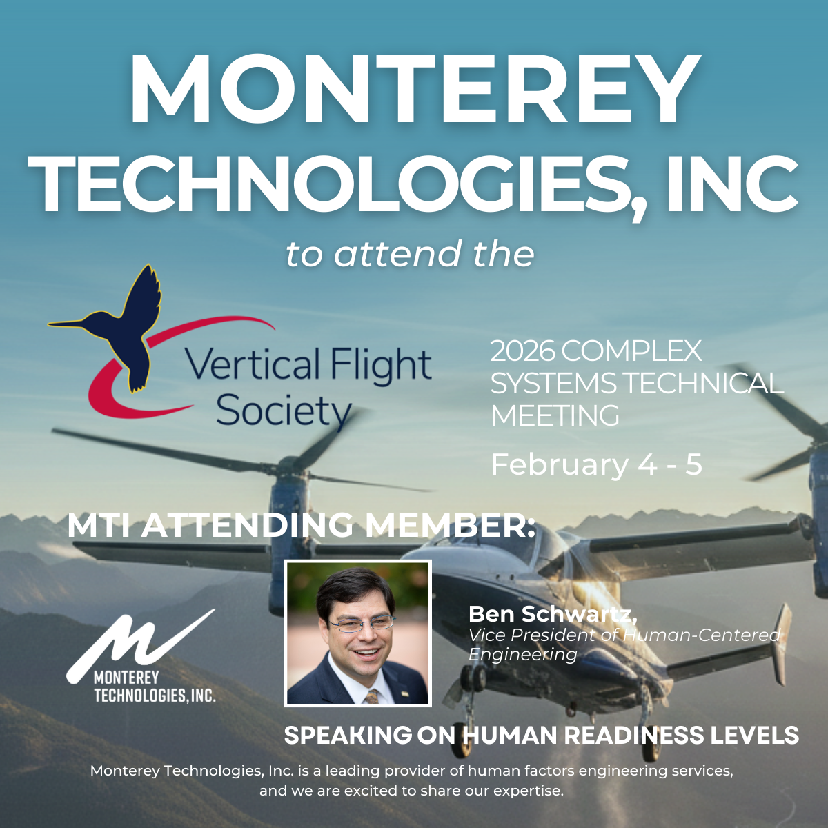 Monterey Technologies, Inc. is attending the 2026 Complex Systems Technical Meeting, sponsored by the Redstone Chapter of the Vertical Flight Society, February 4–5.